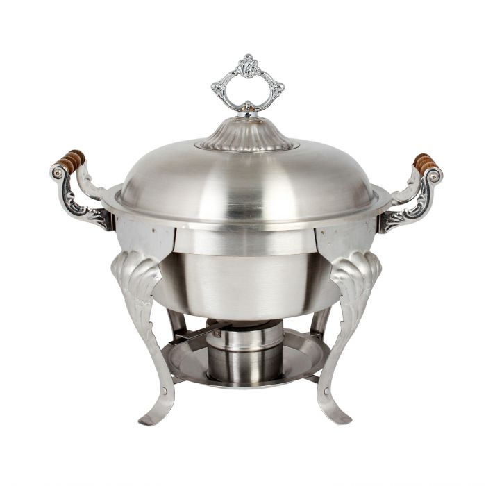 5 qt, 17-5/8" x 13" x 16-5/8", Half Size Round Chafer, Stainless Steel 18-8 with Wooden Handles