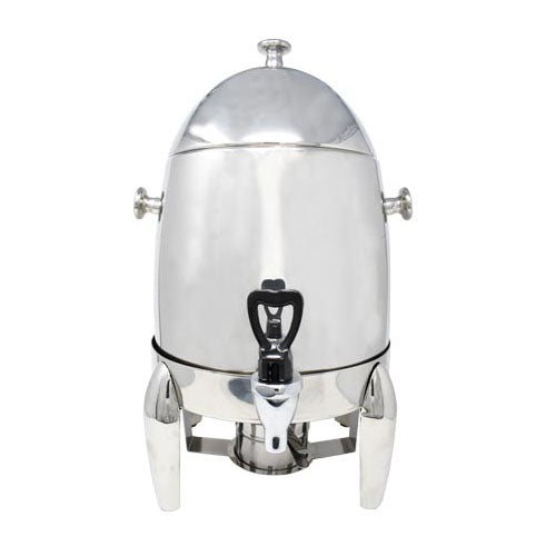 This coffee urn is an ideal addition to hotel beverage stations, catering setups, or buffet lines. Crafted from mirror-finished stainless steel, it offers a sophisticated appearance that enhances any food presentation. The design includes an elevated fuel can holder with a cradle for chafing fuel cans, ensuring stable and efficient heating. Suitable for serving both hot and cold beverages, this urn combines functionality with an upscale look to meet professional hospitality standards.