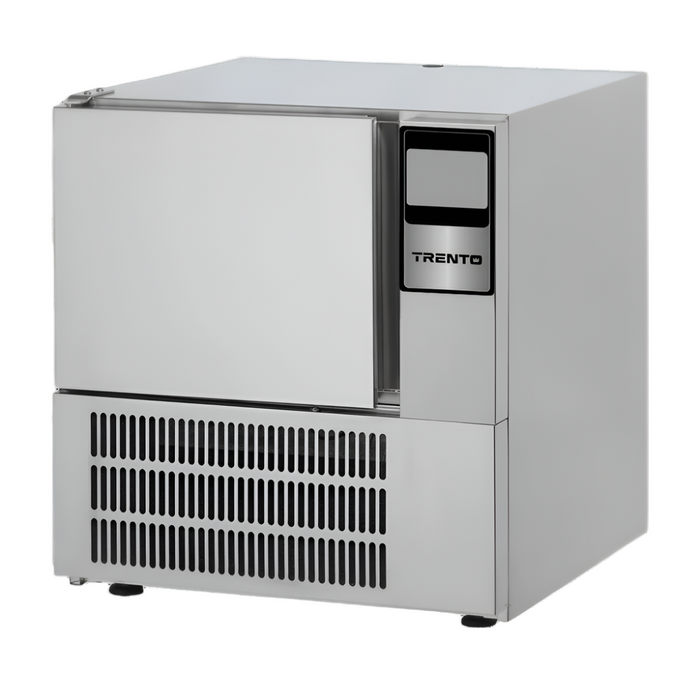 (BC-IT-0103-T) Trento Blast Chiller, reach-in, (3) 13" x 21" tray capacity, self-contained refrigeration, digital control panel, time or core probe control, core probe included, removable grids-rack, manual defrost, automatic cold holding, stainless steel construction, 220v/60/1-ph, NEMA 6-15, 4.2 amps, 0.88 HP, R404A, Made in Italy, CE (shipped on pallet).