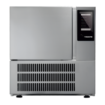 The Trento Blast Chiller is a professional countertop unit designed for rapid cooling and safe food preservation. Measuring 24" wide by 25.6" deep and 26" high, it accommodates three 13" x 21" trays. Featuring self-contained refrigeration with eco-friendly R290 hydrocarbon refrigerant, it offers precise control via a 5" touch screen digital panel with time or core probe options—the core probe is included. Additional features include removable grids, manual defrost, automatic cold holding, and a powerful 0.88 HP motor. Operating on 220V/60Hz single phase with NEMA 6-15P plug, this Italian-made chiller ensures reliable, efficient performance in demanding kitchen environments.