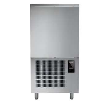 The Trento BC-IT-0101 Reach-in Blast Chiller combines high capacity and advanced technology in a compact 32" W x 32" D x 66" H design. It holds up to ten 18" x 26" trays and features self-contained refrigeration driven by a powerful 1.8 HP motor with environmentally friendly R290 refrigerant. The 5" touchscreen digital control panel offers precise time or core probe control, with a core probe included for accurate temperature monitoring. Additional features include removable grids, manual defrost, automatic cold holding, and a NEMA 6-15P plug, delivering reliable performance for professional kitchens. Made in Italy.